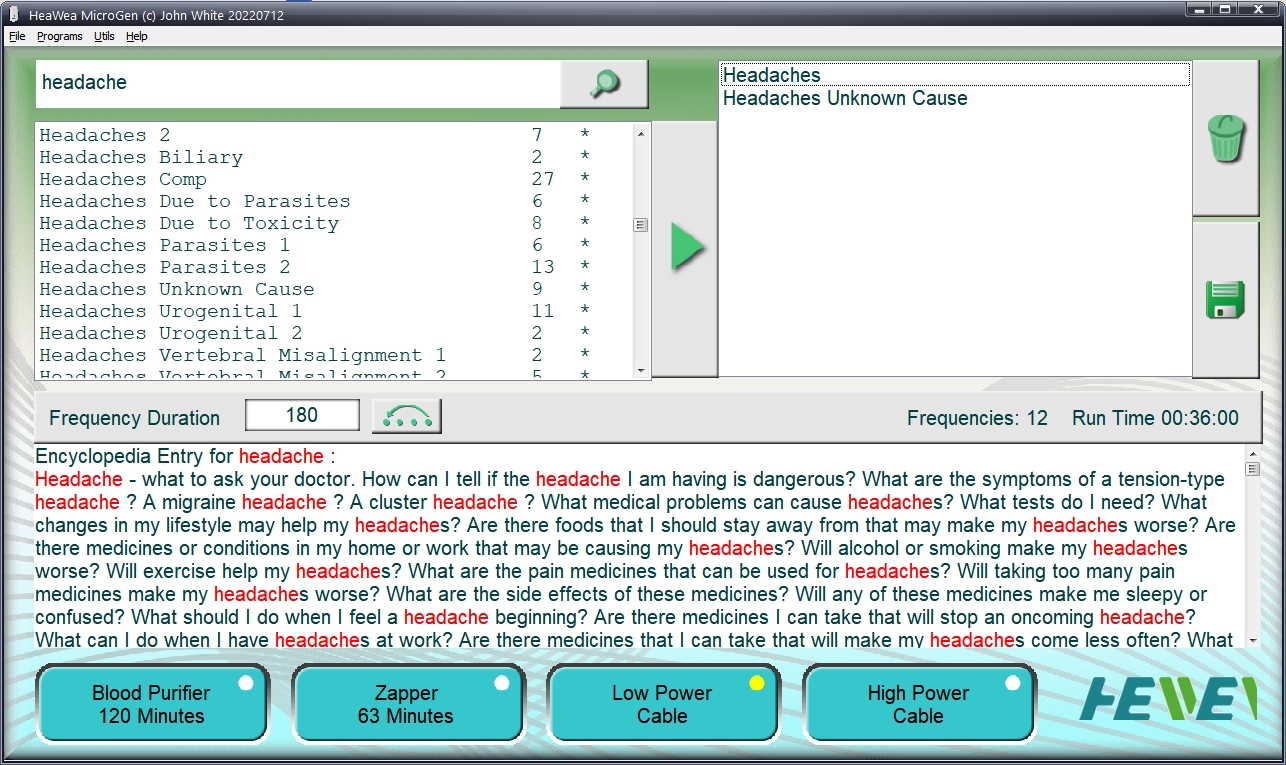 HeaWea offers free software with over 30,000 free programs, helping with various health conditions. For headaches, we recommend you search “headaches” and choose relevant programs.