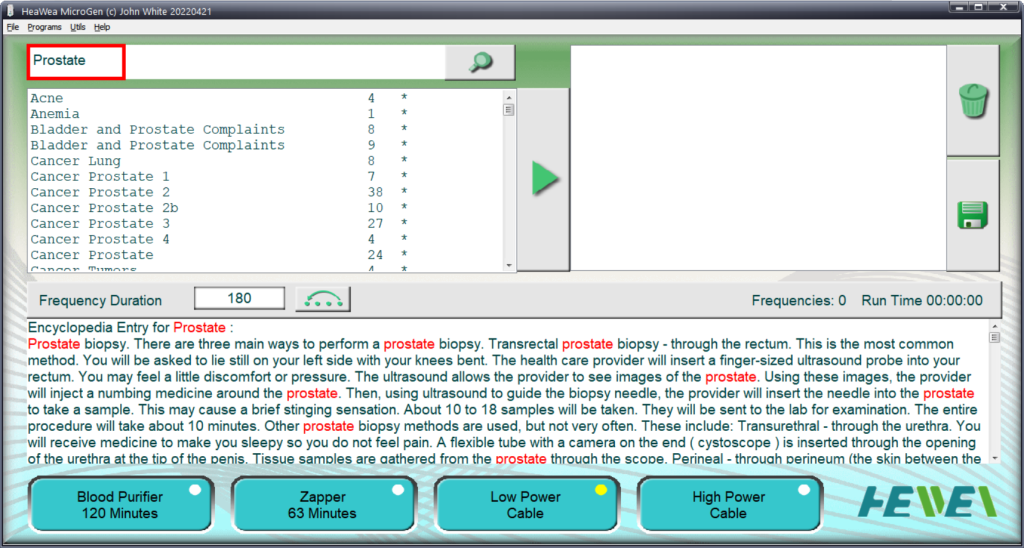 - HeaWea MicroGen: Select the Prostate program on the MicroGen software, then apply the TENS pad on the sides of the waist to release frequency.