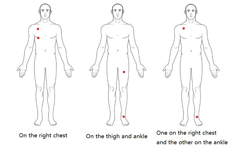 Since atherosclerosis may occur in various parts of your body, we suggest placing the TENS pads in three ways.
