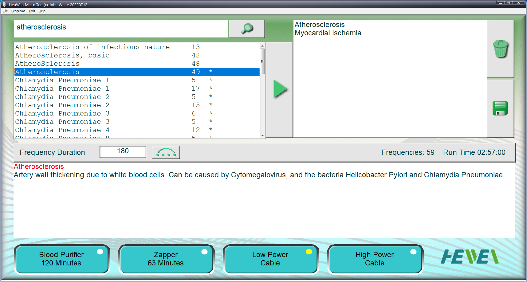 We recommend the following programs to relieve symptoms of atherosclerosis. Each session will take about 3 hours, and we recommend one session per day for at least a month.